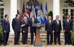Bush was joined by presidents Abel Pacheco of Costa Rica, Leonel Fernandez of the Dominican Republic, Elias Antonio Saca of El Salvador, Oscar Berger of Guatemala, Ricardo Maduro of Hondurasand Enrique Bolanos of Nicaragua.
