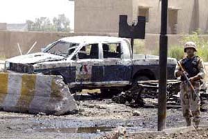 Several minutes later, car bombs exploded at a nearby Amariyah army barracks and an Iraqi military-controlled checkpoint in Abu Ghraib, the focus of a recent Iraqi-US military operation that was the prelude to the current offensive.