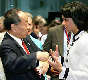 The delegation pledged that a constitution is to be drafted by Aug. 15, 2005, and approved through a national referendum by Oct. 15, 2005, leading to a constitutionally elected government by Dec.31 this year.