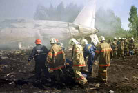 About 100 army conscripts combed the area for debris for the investigation, and a group of Russian security service officials were also at the scene of the crash.