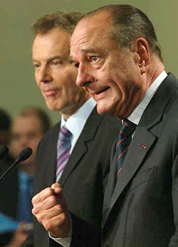 Chirac appeared to rule out speculation that Paris would fall in behind Washington and London soon.