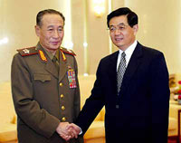 Hu was meeting with Jo Myong-rok, first deputy chairman of the DPRK Defence Commission and director-general of the Political Bureau of the Korean People's Army. He said the two nations, their leading parties and peoples have established a profound friendship during their long revolutionary struggle and socialist construction.