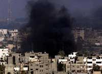 Less than an hour after the Jerusalem bombing, Israeli helicopter gunships fired two missiles at a small Fiat stuck in a traffic jam in a crowded Gaza City neighborhood, turning the vehicle into a burning ball of wreckage. The helicopters then fired again after a group of people gathered around the vehicle, witnesses said.