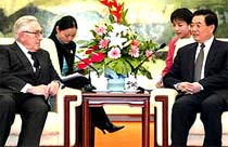 Hu and Kissinger also exchanged their views on international and regional affairs and other issues of common concern.