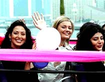 A ceremony was held at the airport welcoming Julia Morley, the executive chairperson of the competition's organizing agency, Miss World 2002 Azra Akin and 110 contestants, who had come from a visit to Hong Kong.