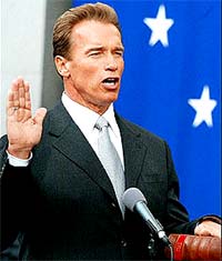 Hollywood actor Arnold Schwarzenegger, who defeated then Governor Gray Davis in a dramatic recall election last month, was sworn in Monday as the governor of California, the most populated state in the United States