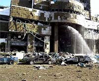 The entrance hall of the Consulate was demolished and window frames were smashed into debris.