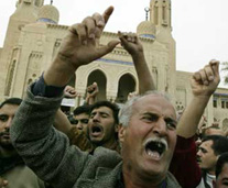He said 32 people were arrested in the raid on the Um al-Tubul mosque, situated at the beginning of a volatile highway leading to the Baghdad International Airport south of Baghdad. The US 1st Armored Division made the cordon and search based on tip-offs received in recent months that the mosque "was being used for criminal and terrorist activities," said Kimmitt. He said the weapons found and "additional items of intelligence value" were evidence that the mosque was involved in activities other than free religious expression. Meanwhile, Arab TV reports said 34 people, including clergymen and worshipers, were detained and no weapons were found in the six-hour long search. A group of several hundred people gathered after the Friday noon prayers in protest of the US soldiers' violation of the Qoran, or Muslim holy book, during the search. Kimmitt said the forces "are aware of the allegation that coalition forces tore pages from the Qoran," but assured that "the greatest possible care was taken" to respect the sanctity of the mosque. Late Friday, fierce bombardment and cannon fire could be heard in the same general area in southern Baghdad, as the US military was apparently conducting the 10-day-old Operation Iron Grip. US forces have been engaged in anti-rebel operations across the Sunni dominated area in central northern Iraq, where attacks on the US-led coalition troops were the strongest.