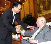 Wen thanked the experts for their devotion to the Chinese cause of revolution and economic construction in the past decades.