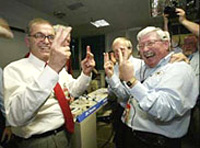 In the minutes before cruise separation, mission scientists at NASA's Jet Propulsion Laboratory broke open containers of "good luck peanuts" they had brought for the occasion, and Gov. Arnold Schwarzenegger and his wife, Maria Shriver, arrived to watch the drama unfold. Also on hand was former US Vice President Al Gore.
