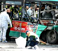 The blast went off about 8:30 am, the peak of rush hour, as the packed public bus drove past a gas station in downtown Jerusalem. Several high school students were on the bus, and at least two of the dead were teenagers. Sunday is a regular weekday in Israel.
