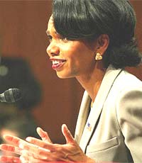 Rice slid into the witness chair before an audience that included relatives of victims of the attacks, in which terrorists flew hijacked jetliners into the World Trade Centre and the Pentagon.
