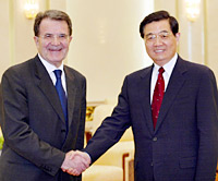 President Hu Jintao made the remarks during his meeting with visiting European Commission (EC) President Romano Prodi in the Great Hall of the People in Beijing on Wednesday afternoon.