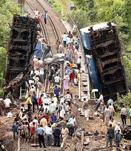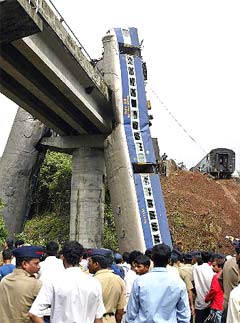 Indo-Asian News Service quoted railway officials as saying that the train hurtled into two boulders that had come loose due to the heavy rains and rolled on to the tracks. Most passengers were sleeping when the accident took place.