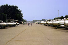 The second part of the museum is a 'flight line' of nineteen fighters parked on the taxiway outside. No ropes, fences or information boards make these aircraft perfect for photographing. One of the aircraft is a MIG-15 from North Korea, the others are from the Chinese air force. Four FT-2s (the trainer version of the MIG-15), one FT-6 (the trainer version of the MIG-19, very rare!) and thirteen F-5s (the Chinese MIG-17).