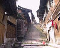 The flat road was behind us soon after we had crossed another bridge over the Yangtze River. We had to toss about on a muddy stone-paved road. The last part of our journey, about 48 kilometers, suddenly became slow.