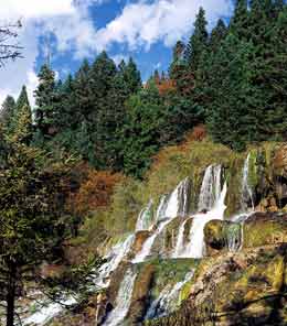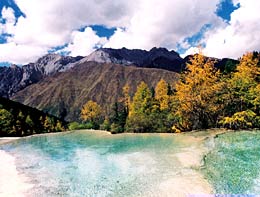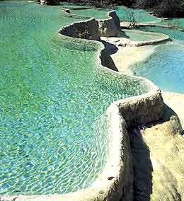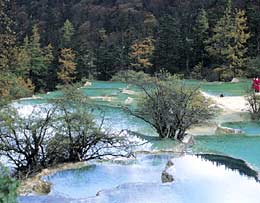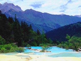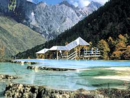 Huanglong (Yellow Dragon) Scenic Area, also in northern Sichuan's Aba Tibetan and Qiang Autonomous Prefecture, neighbors the Jiuzhaigou Scenic Area. It was named after the ancient Huanglong Temple within the area.