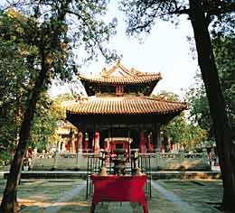 The Confucian Temple, in the center of Qufu City, was built in 478 BC. There are still 466 halls, pavilions and other rooms intact, covering a total area of 21.8 hectares. Repeated improvement and expansion has turned the temple into a palatial complex with nine rows of courtyards. The Great Accomplishment Hall, the major structure of the temple, is 33 meters tall. It is roofed with yellow glazed tiles and has octagonal eaves. The front 10 stone columns are carved with dragons. In addition to a statue of Confucius, the hall also houses stone inscription of the Ming Dynasty, which tells the life story of Confucius in 120 pictures, as well as a great deal of stone tablets.