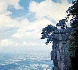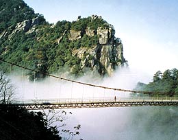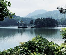 Mount Lushan, located by the Poyang Lake, 36 kilometers south of  Jiujiang City, Jiangxi Province, covers an area of 350 square kilometers. The Hanyang Peak, the highest, rises 1,474 meters above sea level. At Lushan, towering peaks and dangerously steep cliffs on all sides surround a relatively gentle center. The landscape here is spectacular with some 100 peaks being veiled in mist for some 191 days annually on average. It is particular cool in summer and is therefore a world-renowned summer resort.