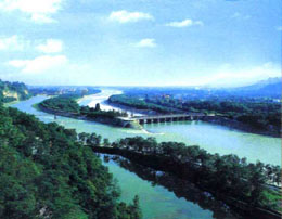 Mountain, northwest of Dujiangyan City in Sichuan Province. Here the Minjiang River, after being joined by many tributaries in its upper reaches, runs toward the Chengdu Plain. As the Yulei Mountain originally blocked the river so that water could not flow eastward, the plain had no access to river irrigation and agricultural development in the region was therefore seriously affected. Li Bing, governor of Shu Prefecture during the Warring States period (475-221 BC), made a careful survey of the region and then had a channel cut through Yulei Mountain. He put a dyke in the middle of the Minjiang River to divide it into two parts. This happened about 250 BC. He also ordered the local people to open channels and canals on the plain so as to divert the river for irrigation purposes. This finally turned the agricultural potential of the plain into a land of abundance.