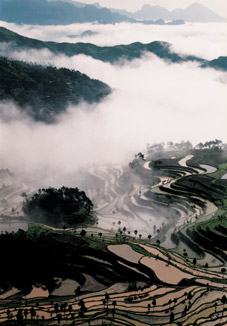 Early the next morning, I reached Yantou Town, which was still deep in sleep. I walked along a corridor-like street leading to a hill. Standing on the top of the hill, I had a full view of the town and a distant view of the Shizi Rock, which occasionally disappeared from sight. Anchored along the riverbanks were many rooster tail-shaped bamboo rafts. The owners of which were preparing to go fishing. The air was so fresh it greatly stimulated my interest as I started my one-day tour.