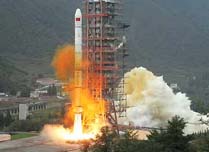 The 1.38-ton satellite, developed and manufactured by China, entered its orbit 24 minutes after takeoff. In the next few days, it will be positioned at 105 degrees east longitude over the equator with an observation scope covering one third of the earth's surface, according to scientists.