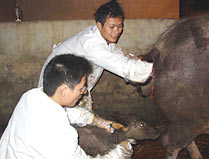 The buffalo, born early Thursday morning, weighs 23 kilograms. Its heart rate, temperature and breathing were normal.