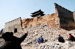 A section of circumvallation in the ancient city of Pingyao, in north China's Shanxi Province, was abruptly collapsed on October 17. Witnesses say the collapsed rampart was about 17 meters in width and has huge cracks.