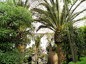 The main conservatory, a collection of rare trees mixed with rockeries and an artificial waterfall