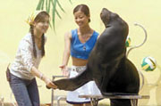 Sea lions are skilled ball players in the water. But even an excellent player can sometimes make a mistake. When a sea lion misses a ball, it puts its "hands" to its face as if ashamed of the missed shot.