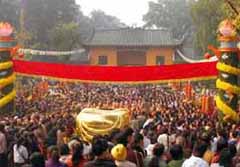 The 1,500-year-old Nanhua (South China) Temple was enveloped by incense and Buddhist chants Sunday morning as thousands of Buddhist believers from all over the world inundated the temple to mark its founding anniversary.