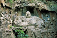 On the Feilai Peak, there are many rock carvings of Buddhas, Bodhisattvas and Arhats, as well as carvings depicting Xuan Zang's trip to India to acquire Buddhist scriptures, from the Five Dynasties Period to the Yuan Dynasty (1271-1368). Among the carvings, the vivid image of Maitreya, the fat bare-bellied Buddha with a smiling face, has become the symbol of the Lingyin Temple.