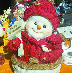 The shop has a range of delicate snowmen, deer, bears, Santa Claus, angels and various Christmas specials made of wax and resin. Candle holders in the shape of houses or vases and Christmas cards are also available.