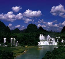 Along with the enhancement of friendly ties between China and Vietnam, the Detian Scenic Zone was established several years ago, and was so named for its spectacular Detian Waterfall.