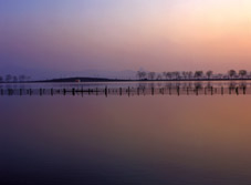 Surrounded on three sides by rolling, wooded mountains, the West Lake covers an area of 5.65 square kilometers. Viewed from above, Xiaoyingzhou, Huxinting, and Ruangongdun Islets look like three gems inlaid in the lake's surface; and the Su and Bai Causeways intersect the lake like floating ribbons, embellished with green willows and red peach blossoms. While the lake reflects the skyline, the mountains set off the grace of the water, each shining more brilliantly in the other's company. All these elements compose a beautiful landscape painting; and travelers feel as if they are inside the painting. Su Shi, an eminent poet of the Song Dynasty (960-1279), once likened the West Lake to Xi Shi, a famous beauty in ancient times, in one of his poems: "Rippling water shimmers on a sunny day; misty mountains are wonderful in the rain. Plain or gaily decked out like Xi Shi, the West Lake is always alluring." As Su described in his poem, the beauty of the West Lake lies in its lasting charm which survives the change of seasons, weather, and times of day.