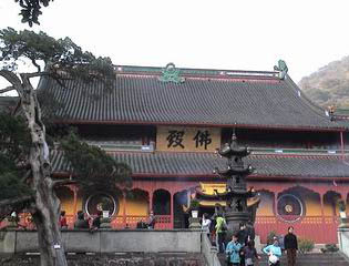 Tiantong Temple, 25 km to the east of Ningbo, is the No. 2 mountain among the five Chinese Zen Buddhist School Mountains. It is often referred to as the "Dongnan Foguo(Buddhist Country in Southeast China)". The temple was built in 300 A.D. so it is over 1660 years old. It is built on a mountain range with its ladder-layout. The temple has more than 20 ancient buildings including Tianwang Dian (Hall of Heavenly King), Fatang (House of Buddhist Texts), Xianjue Tang (House of Foresight), Luohan Tang (Arahat House), Tower House, Yushu Lou ( House of Imperial Inscriptions ). The temple originally had 999 rooms, 730 of which are left, now occupying 58,000 square meters. Its grandeur is rare in China. Tiantong Temple is situated in the national Forest Park of Tiantong, therefore it is surrounded by thick woods and tall trees and bamboo in the mountain ranges with ten scenic spots. In the temple there are the Imperial Inscriptions and Steles by Emperor Shunzhi, Emperor Kangxi and Emperor Yongzheng in Qing Dynasty.