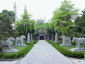 Just inside the museum's front gate, a tree-shaded path lined with stone statues of civil servants and generals leads to the mausoleum.