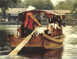 This "Sunset Boat Tour" is in operation from April to October each year. The boat for this "Boat Tour" is 7 meters in length and 1.7 meters in width. It is made according to an old Chinese Painting from the Song Dynasty 900 years ago, called " the Panoramic View in the Capital". The people will take the boat from our departure place at the "Lotus Market", which is at the opposite side of the North Gate of the Beihai Park. The boats are paddled by the boatmen who wear in yellow vests and bamboo hats. With all the red lanterns on, with the sweet tune from the Chinese stringed and woodwind instruments played by the ladies on the bow of boats, the people can not only enjoy tea and local snacks on the boat, but also they can get a panoramic view of the local people's daily life, the local customs and flavor from the banks. The boats get across the Yingding Bridge (which looks like an ingot and hence is very famous in the local history) and come into a larger piece of water with much open view to the western hills. The most exciting moment here is, when night falls, the people will light up the candle in the little paper boats and put them into the water. The little boats flicker at each other, and now and then twinkle at the people on board and on the bank. While the music is in the air, it is like an old story-back to those days of the Tang or Song Dynasty, like a dream back to those moonlit nights in the water region south of the Yangtze......