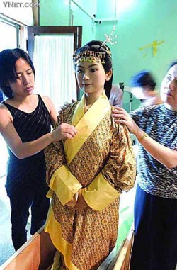 In order to preserve the ancient mummy, Zhao Chengwen, a professor with the Chinese Criminal Police Institute, sculpted a statue of the woman in January, with the help of skull X-rays.