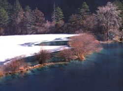 It boasts crystal clear water in its alpine lakes and is rich in various plants and wild animals. During the winter season, which lasts from October to March, Jiuzhaigou looks like a frozen fairyland as its trees and plants are covered with snow. The snow can absolutely dazzle the onlooker. Bitter cold hardens it into ice, transforming trees and plants into "ice flowers" and waterfalls into natural ice carvings.