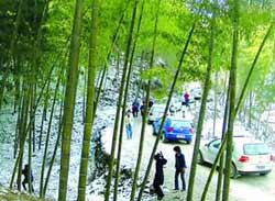 A couple of tourists drove their private cars to visit the Simingshan Scenic Spot in Ningbo, Zhejiang Province.