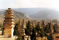 In addition to the main entrance, the temple has guest rooms, a Dharma Pavilion, the Baiyin Hall, the Ksitigarbha Hall, and a hall housing 1,000 statues of Buddha and murals depicting 500 arhats. Frescoes on the four walls of the Vairocana Hall record the history of the temple and its martial arts. (Xinhua News Agency January 31, 2004)