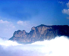 After a long journey up the mountain's zigzagging roads, we finally arrived at a plateau. On our arrival, the sun came out and the thick clouds dispersed. The green mountains appeared like supernatural entities gleaming in the mist. We were temporarily stupefied before excitedly beginning to take pictures, afraid of missing this short-lived sight which would soon again be hidden by the clouds.