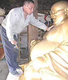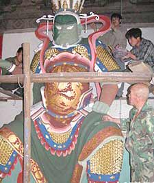 In order to recover the original look of the sculptures the temple has invited experienced artisans from northwest China's Shanxi Province to refurbish the ancient works of art using traditional Chinese methods.