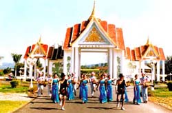 The traditional New Year's Day of the Dai people, commonly known as the Water Sprinkling Festival, falls on the 14th day after Clear and Bright Festival usually the 5th of April. On this day thousands of people, old and young, come form the villages to sprinkle each other with water as a way of saying "Happy New Year" and of wishing one another longevity and a good harvest.