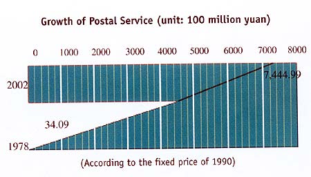 The information industry has become the key industry in China. Statistics show that the output value, sales volume and profit of the electronic and telecommunications equipment industries have all surpassed those of the traditional industries, making the greatest contribution to the growth of the national economy. Posts and telecommunications are an important component of the information industry. After decades of construction and development, the national postal network—with Beijing and other major cities as the center—links all cities and rural areas in China. By the end of 2002, China had more than 70,000 post offices, including more than 20,000 with comprehensive functions, which made up over 28 percent of the nation's total.
