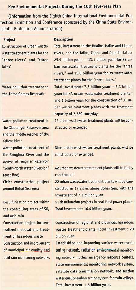 During the 10th Five-Year Plan period, the Chinese government will explore investment channels and put 700 billion yuan in environmental control, an increase of 94.4 percent over the Ninth Five-Year Plan period. With the growth of China's environmental protection industry expected to maintain 15-20 percent during the 10th Five-Year Plan period, environmental protection has attracted international cooperation and investment. For example, the Canada-China Project on Cleaner Production under the Canadian International Development Agency from 1997 to 2002 invested about US$ eight million donated by the Canadian government to help reduce pollution in China's old industrial centers. In 2003, the Canadian Government announced plans to extend this aid.