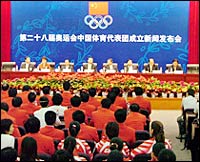 Le vice-directeur du Bureau d'administration d'Etat du sport, Duan Shijie, a révélé la liste de la délégation sportive chinoise pour les 28e Jeux Olympiques lors de la réunion qui s'est déroulée le 20 juillet à Beijing, à 9 heures (heure locale). La délégation chinoise se compose de 633 membres (407 sportifs et 226 officiels)et va s'efforcer de s'adjuger 17 à 36 médailles d'or.