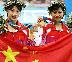 Les Chinoises Li Ting et Lao Lishi ont remporté peu de temps après la dixième médaille d'or de l'épreuve de haut vol 10 m dames, avec un total de 352,14 points, suivies par les Russes Natalie Goncharova et Yulia Kotunova, en deuxième place avec 340,92 points. La médaille de bronze a été décrochée par Blythe Hartley et Emilie Heymans, du Canada, avec 327,78 points.