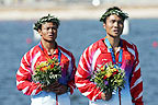 Meng Guanliang et Yang Wenjun ont re?u la médaille d'or du C2 500 m messieurs du cano?-kayak